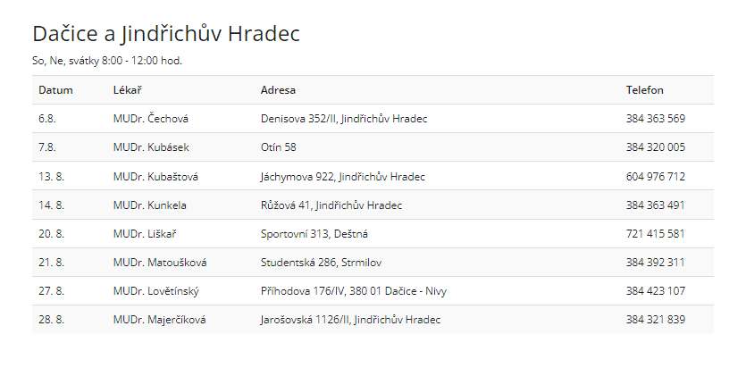 Zubní pohotovost v srpnu 2022 v Jihočeském kraji